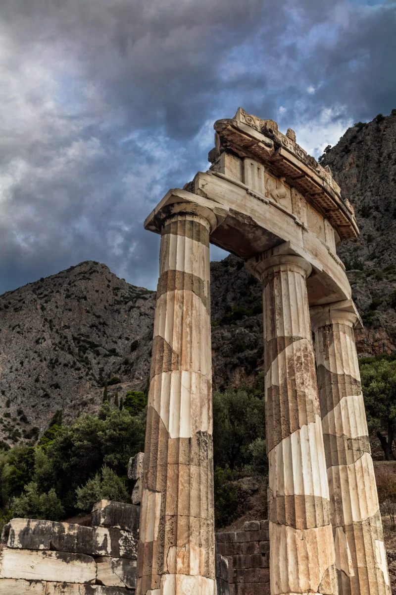 The "Tholos" (named after its architect, Theodoros of Phokis) is perhaps one of the most iconic and well know structures among all the ruins in Delphi. It is interesting to note, however, that no one really knows exactly what it looked like when it was intact or even its real purpose; even the erect columns are but restorations from the original.